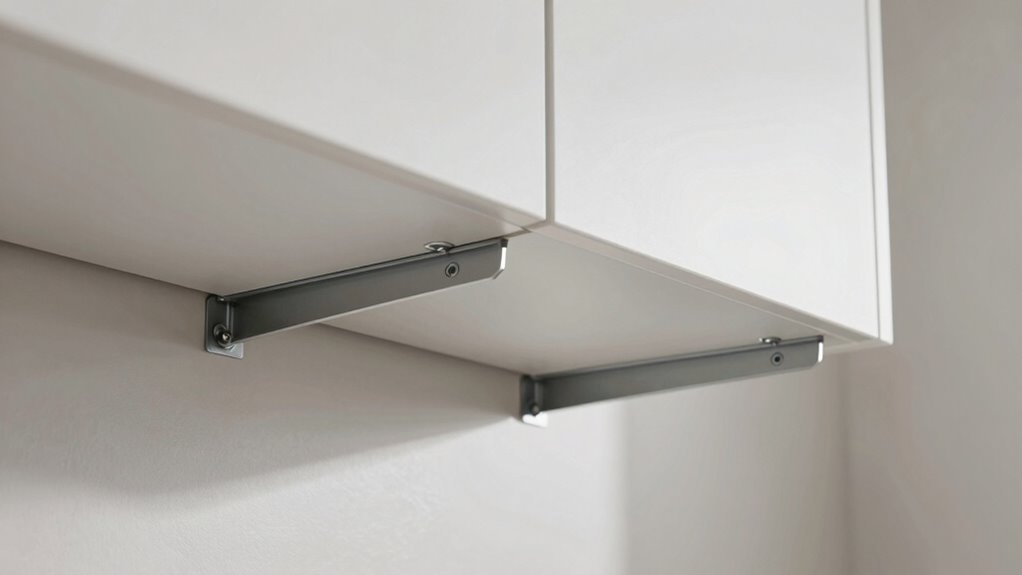 Ever wonder how to guarantee your wall-mounted cabinets stay firmly in place? Choosing the right hardware is key. Opt for sturdy, corrosion-resistant brackets, anchors, and screws that support both weight and cabinet aesthetics. Proper hardware guarantees your interior organization remains intact without sacrificing style. Additionally, selecting hardware with appropriate weight support capacity ensures long-term stability. Incorporating appropriate installation techniques can further enhance safety and durability. Using the correct hardware installation methods can also prevent common issues like loosening or shifting over time, especially when considering the benefits of curiosity in understanding how different hardware options work together to ensure safety. Exploring load distribution principles can help optimize the overall stability of your mounted cabinets.