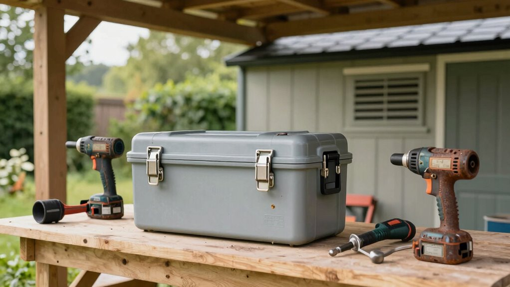 Storing power tools outside exposes them to a range of risks that can quickly impair their functionality and lifespan. Exposure to moisture, dirt, and temperature changes can cause rust, corrosion, and electrical damage. Without proper protection, tools may be damaged beyond repair. Using weatherproof containers helps shield your tools from the elements, but if they aren’t securely locked, theft becomes a real concern. Wind and animals can also cause damage or displace tools. Here’s a quick overview: