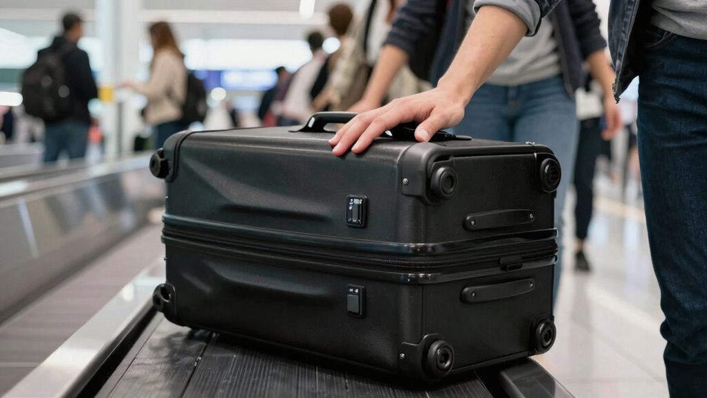 To retrieve your gate-checked bag quickly and safely, stay attentive and proactive once your flight lands. Head straight to the designated baggage pickup area, keeping your travel accessories, like a luggage tag or GPS tracker, handy for quick identification. Be aware of airport security measures; have your boarding pass and ID ready to streamline the process. Keep an eye on the baggage carousel, and don’t hesitate to ask airport staff if your bag isn’t immediately visible. Moving promptly helps avoid congestion and reduces the risk of theft. Once your bag appears, lift it carefully, ensuring it’s intact. Staying alert and prepared allows you to retrieve your gate-checked bag efficiently, minimizing stress and safeguarding your belongings.