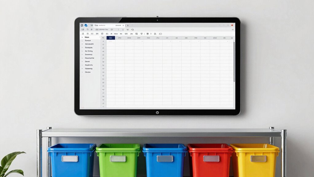 Organizing item details effectively is essential to creating a functional storage inventory spreadsheet. A clear labeling system helps you quickly identify each item, while proper item categorization streamlines searches and inventory checks. To organize your details: