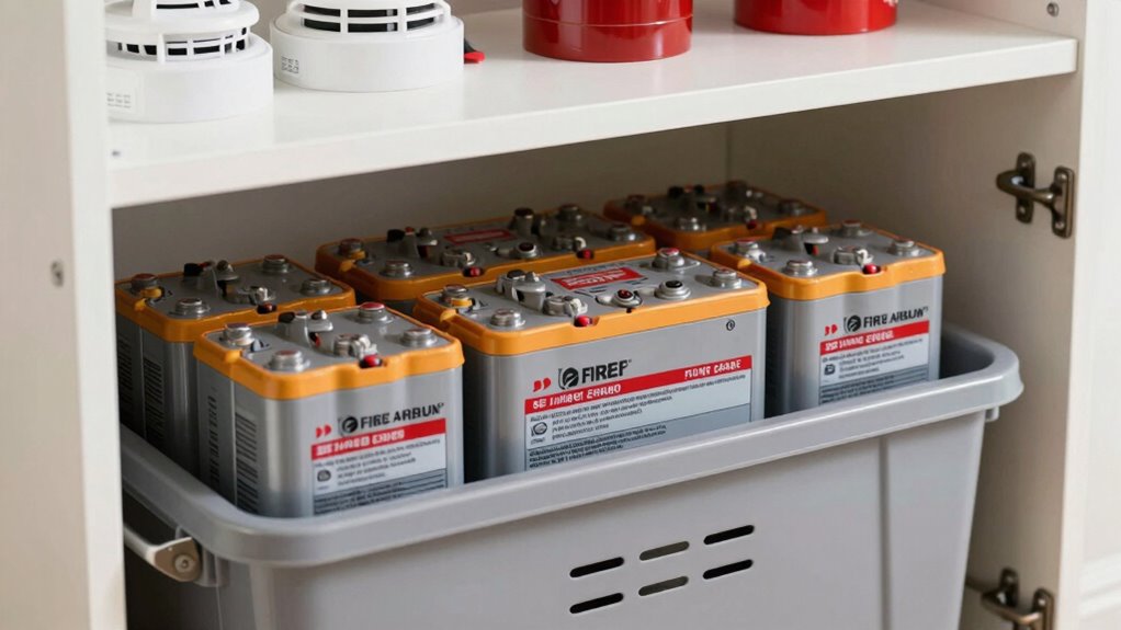Think of inspecting your lithium batteries as tending a delicate garden; regular attention keeps hazards at bay. You should inspect stored batteries monthly, checking for signs of battery corrosion, swelling, or leaks. This proactive approach helps you conduct a fire risk assessment, catching potential issues before they ignite. By staying vigilant and promptly addressing concerns, you safeguard your home from the silent threat lurking within stored batteries.