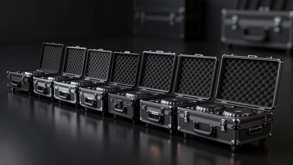Lightweight flight cases make transporting DJ controllers much easier, especially during long gigs or when moving between venues. Impact-resistant padding helps protect equipment without adding unnecessary bulk, making setup and breakdown less tiring. Wheels and handles are game-changers, especially for heavier or bulkier controllers, as they substantially boost portability. The key is balancing weight with durability—an overly heavy case can slow you down, but a lightweight one still needs to safeguard your gear properly. Material choices like high-density foam and lightweight plywood help keep the case manageable without sacrificing protection. Ultimately, a well-designed, lightweight case can streamline your setup process, reduce fatigue, and make your overall DJ experience smoother.