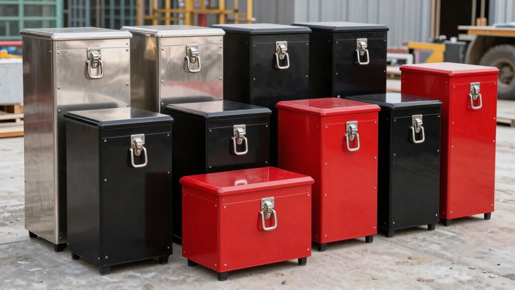 Selecting a lockable jobsite storage chest requires attention to the materials used, as durability and strength are essential for protecting tools and equipment in demanding environments. Steel, especially heavy-duty or reinforced types, offers top-tier strength and impact resistance, making it ideal for rugged conditions. Aluminum is lighter and resists corrosion, which is beneficial for outdoor use where moisture is common. High-density plastics like polyethylene provide good impact durability and corrosion resistance but may not withstand extreme impacts as well as steel. Welded seams and weatherproof coatings further enhance a chest’s ability to endure environmental stressors, ensuring long-term protection. Choosing the right material depends on your specific needs, balancing strength, weight, and environmental resistance.