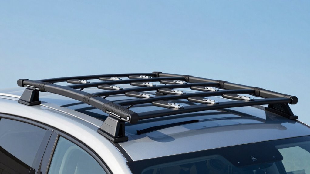 Lockable crossbars aren’t compatible with all raised roof rails. I’ve found that compatibility depends on the specific design and mounting system of your roof rails. Some rails need custom adapters or specific crossbars, while others work seamlessly with lockable options. To guarantee a perfect fit and maximum security, I recommend checking your vehicle’s manual or consulting with the manufacturer before purchasing lockable crossbars.