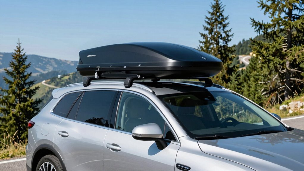 Are you confident your vehicle can handle the rooftop cargo box you’re considering? First, check that your roof rack crossbars match the cargo box’s mounting system—whether they’re square, round, or aerodynamic. Make sure the box’s weight capacity doesn’t exceed your vehicle’s roof load limit, which is usually specified by the manufacturer. It’s also essential to confirm your roof structure can support the combined weight of the box and its contents safely. Measure the available roof space to ensure the box fits without overhanging or blocking doors or sunroofs. Lastly, consult your vehicle’s roof rack compatibility guide to ensure a proper fit and secure attachment. Doing this ensures your cargo stays safe and stable during your trip.